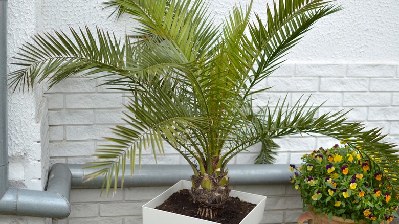 After separating your majesty palm, it's time to plant its offshoots in containers with adequate drainage holes. Choose pots 2 to 3 inches wider than the root system to ensure sufficient room for growth. But before you plant the pups, prune the longer roots to fit in properly. Also, spread a 2-inch layer of well-draining soil with a pH of 5 at the pot's bottom to prevent it from becoming waterlogged easily. Mixing in sand or perlite is also an option if you are concerned about soil drainage.