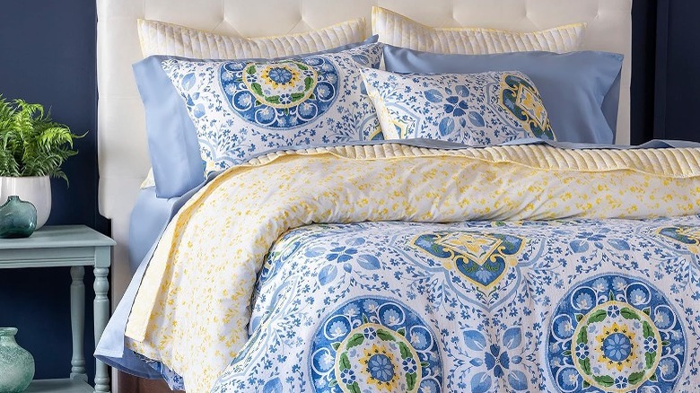 If you're in the market for a new comforter set, Martha has you covered. Available in 15 different patterns and colorways, these 3-piece sets provide you with a 100% cotton, 180 thread-count comforter and two matching pillow shams for a queen or king-size bed. According to reviews on Amazon, the comforter feels high-quality and super soft without making users sweaty overnight.