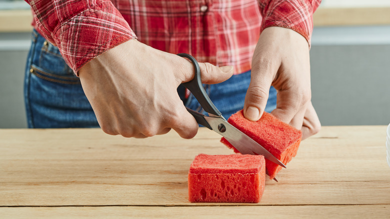 Why You Should Consider Snipping A Corner Off Of Your Kitchen Sponge