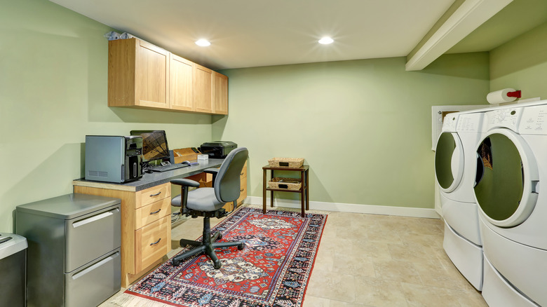 Jonathan and Drew Scott aren't new to the concept of the versatile home office. On their show "Celebrity IOU," in the episode "Viola Delivers a Dream Home," they created a home office for Viola Davis' friend that doubled as a music lounge, combining work and relaxation. In the case of this Property Brothers client, she wanted a mini office in the laundry room with a table that she could keep stuff on, presumably laundry that needs arranging, and wanted it to have a built-in crate for her dog. These two requests show that she wanted the new setup to be conducive to multitasking while being cozy enough to have her dog with her.