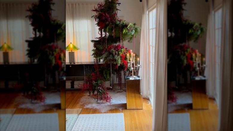 For those who want to decorate for Christmas without purchasing a real tree or setting up a traditional faux version, a floating tree is a fun project that will put a unique spin on your Christmas decor. A video posted on Instagram by @want.zamora shows how to create a spiral hanging Christmas tree using chicken wire, fishing line, three tension rods, and faux greenery and flowers. This DIY works by bending the chicken wire into a spiral shape and suspending it from the ceiling using fishing line anchored to tension rods placed between beams on the ceiling. If there are no beams in the area where you wish to hang your tree, you could try using several adhesive hooks, like Command ceiling hooks from Amazon, or drilling a hook into your ceiling, depending on the weight of your tree.
