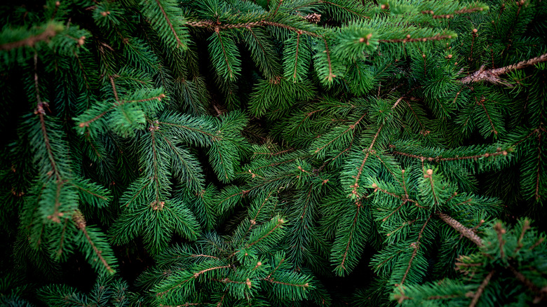 As for looks, there's a wonderful variety of textures and colors depending on which greens you can acquire. Creating a vibrant display is easy when you layer different hues and colors together: Some spruces and junipers have gorgeous blue-green tones, while some cedars (technically known as false cedars as they're actually cypress trees) range in color from blue to olive green. Yew foliage is a glossy dark emerald green. Using an array of colors to create some contrast helps create a more visually interesting display, so all the shades of green don't just blend together.