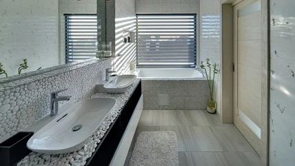 The main star, pebble tile, might be the most important purchase. There are colorful tiles — like Rain Forest's mixed berry at Home Depot costing $7.08 each — and natural white ones, like Elida Ceramica pebble beach tile ($8.98 at Lowe's). It is all about the look you want for your space. If you're unsure, a neutral color like white or gray is the best choice, as it will stand the test of time, even if your design style changes.