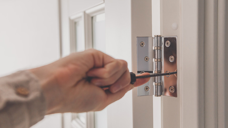 Let's start by focusing on what is often the main culprit: the hinges. To address the problem, you'll need some basic tools. A screwdriver is essential for adjusting or replacing the hinges. You need to get up close and personal with your door's hardware. Grab the screwdriver and gently wiggle each hinge to see if there's any play. Loose hinges can lead to a loss of tension, causing the door to move on its own. Tighten the screws on each hinge, ensuring they're snug against the door and frame.