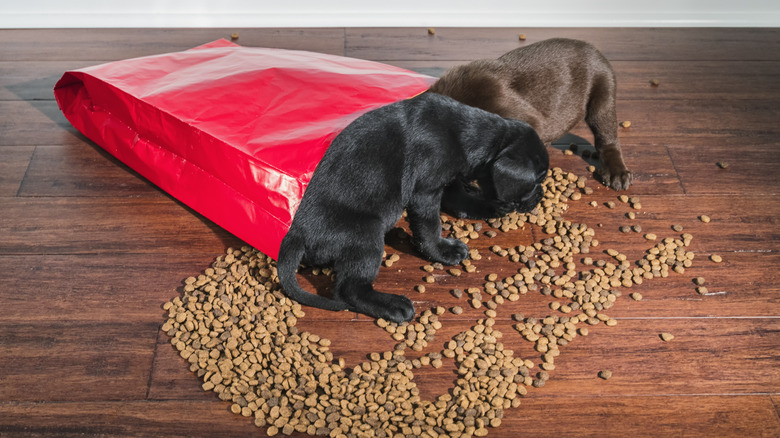 One last idea: Here's a way to keep your pets from stealing food in between meals, if that's been a problem for you. Trash cans with lids will protect dry pet food from excess moisture and prevent sneaky pups from chewing holes in the bags. When storing the food, keep it in the original bag, which is designed to prevent the breakdown of key nutrients. Also, if your pet has a reaction to the food, the nutritional info on the bag might make it easier to figure out the issue.