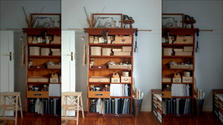 Bookcases are an essential piece of furniture for any avid reader. However, even if you're part of the 56% of the population that owns fewer than 50 books (via YouGov), you may still have a bookshelf, as they're incredibly useful when it comes to displaying décor in general. After some time, however, repeated moves, regular wear and tear, and even simple changes in taste can encourage you to leave your previously-beloved bookcase on the curb in favor of a newer model. You might even like the look of your piece but don't know what to do with it, as perhaps you don't have enough books and decorations to fill all the shelves.