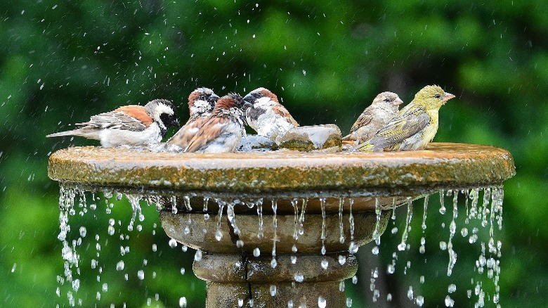 If you're out of baking soda, using Alka-Seltzer is one of the easiest ways to clean your birdbath. Additionally, this medicine will also come with the added benefit of including citric acid, which can kill bacteria and help get rid of tarnish on copper birdbaths. However, while it's true that baking soda is often added to pools to balance alkaline levels, don't be tempted to leave Alka-Seltzer tablets in your birdbath's water. This is because the medicine can be toxic to birds if ingested. At the same time, its potential toxicity shouldn't stop you from using it to clean your birdbath, as the tablets likely won't leave enough residue to harm your feathered friends. Just be sure to rinse well after cleaning with this product.