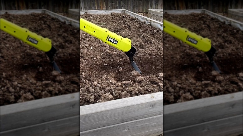 If you prefer a power tool with a little more versatility, while also removing weeds, Ryobi's Cordless Cultivator allows you to till the soil while removing weeds. It's available for about $249 at Home Depot with a battery and charger. While the cultivator can dig more deeply into the soil than the Ryobi power hoe, it's not quite as precise around your flowers and vegetables. It also can't harvest vegetables like the cordless hoe can do.