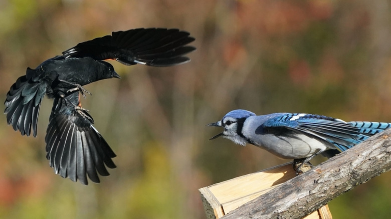 Beyond just their behavior, blue jays have dietary habits that can be frustrating as well. They're notorious for burying acorns and seeds, which can lead to random plants growing in your garden and attract other pests, like squirrels, to your yard. Since blue jays love nuts, corn, and sunflower seeds, if you use those in your feeders, they will aggressively guard the food source. They can even mimic hawk calls to scare away competitors. This makes them very difficult to deter once they've claimed your space as their own. They are also large songbirds with wingspans that can reach 17 inches across, which means they require a sturdy perch and can damage smaller feeders that aren't designed for the weight.