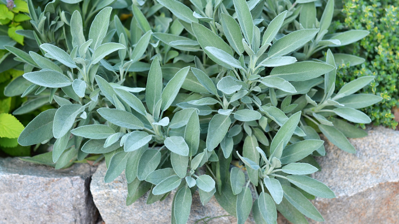 Although both basil and sage are kitchen herbs that prefer full sun and well-draining soil, their water needs aren't quite the same, and this is due to their different backgrounds. Basil's origins lie in the tropics where rain is plentiful, whereas sage comes from the Mediterranean, where drought is frequent. When growing these two incompatible herbs together, you'll either end up committing one of the mistakes everyone makes when growing sage — overwatering it. Or you will unintentionally underwater the basil plant, which requires more consistent moisture than sage. Luckily, with so many compelling aromatic plants for gardeners to choose from, we can avoid growing basil and sage together, and instead choose from better herbal companion plants.