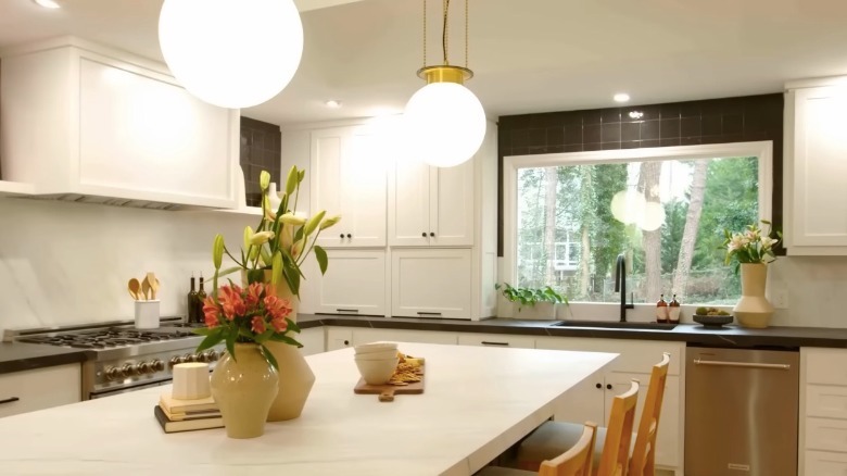 Egypt and Mike stepped in and not only finished the job but exceeded Gregory's expectations. The kitchen was a big highlight of the project with light wood floors, white cabinets, and gray stone counters. The most notable feature, however, is its waterfall island with a one-of-a-kind coconut shell tile siding that has the show's fans raving. "Very interesting!" said one comment on YouTube. Egypt installed them herself to add a touch of boho to the room. While it surely did that, the island also impressed the owners, admitting that it proved them wrong about not wanting an island in the first place.