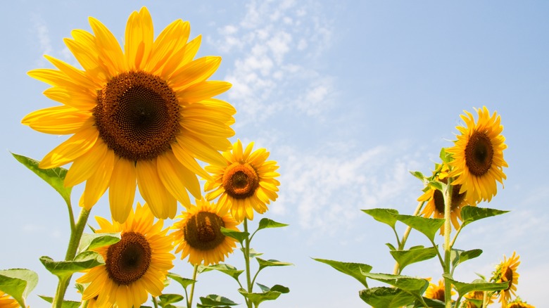 Fields full of sunflowers (Helianthus ssp.) are becoming a more common sight on farmland in many places. The benefits of growing sunflowers en masse are two-fold: they can be a valuable cash crop (harvested for their seeds and soil) and a helpful cover crop that improves soil conditions. Their deep tap root helps with soil compaction and absorbs harmful metals, including lead, arsenic, and zinc. There are many varieties of sunflower to plant that can help improve the soil in your garden.