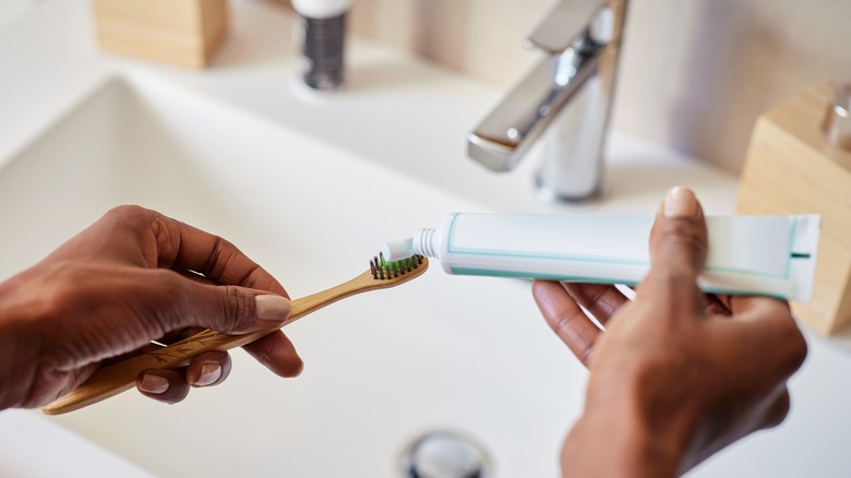 Toothpaste is made to clean our teeth, not shower stalls. The percentage of cleaning, scrubbing, and antibacterial agents a tube contains directly correlates to human health safety — after all, you put toothpaste in your mouth. In other words, it's pretty low. Bathroom cleaning products are formulated for use on ceramic, stone, glass, or, in the case of shower door tracks, metal. There's a reason you wear (or should wear) gloves, a mask, and a long-sleeved shirt when cleaning. It's to protect your skin and lungs from adverse reactions to the sometimes high percentages of active ingredients in bathroom cleaners.