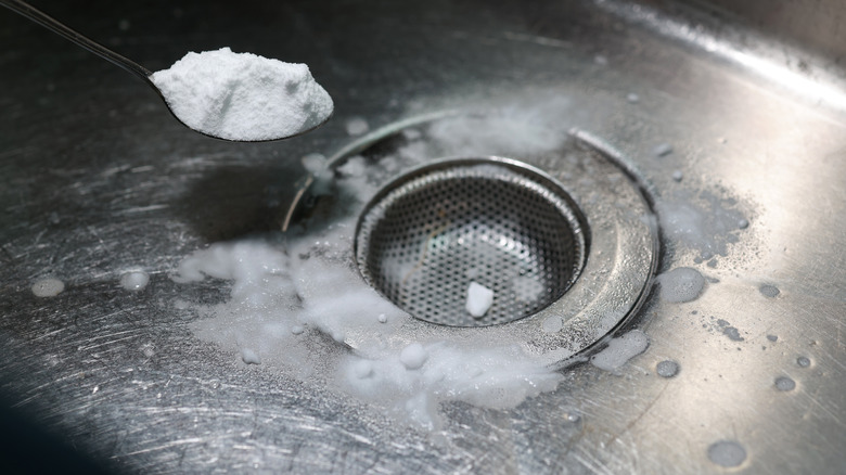 To deodorize and clear your kitchen drains, Mr. Rooter Plumbing says to switch the hot water on and let it run to pre-rinse the drain. Turn it off and carefully pour a cup of baking soda down the kitchen drain, followed by two cups of heated vinegar. They'll fizz and bubble for a few seconds when they come into contact and leave it alone for roughly an hour before running the hot water again to flush the pipes. Ideally, you'll use this as part of your regular maintenance routine to periodically refresh the drain or areas you can't reach with a scrub brush so layers of gunk don't have time to build up, leading to bigger problems. Remember that this method only works right away when it's bubbling. If you wait, they'll cancel each other and not work well.