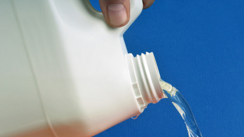 When it's time to give your refrigerator a deep cleaning, look no further than your pantry for two kitchen staples that will do the job. The distilled white vinegar that you use in recipes for pickles, dressings, and marinades stands out as an effective and food-safe cleaning agent. That's because it contains approximately 5% acetic acid to dissolve grease, grime, and sticky messes. As an alternative, you can grab that box of baking soda. Unlike vinegar, sodium bicarbonate is a base, not an acid. But it does an excellent job of dissolving dirt, while it deodorizes the interior of your fridge. Though you may think combining vinegar and baking soda would give you double the cleaning power, they should be used separately in order for each ingredient to be effective.