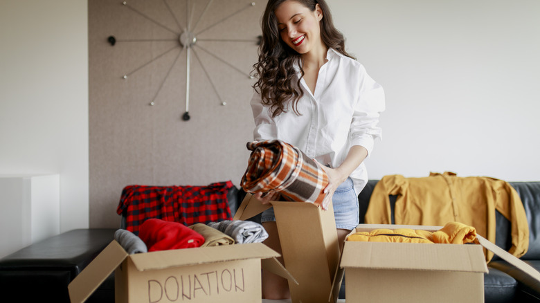 It can be difficult to find the time (and willpower) to declutter. Some might do it once a year during spring cleaning, but if you have to do it on a whim, it might be challenging to find the energy to take on such an endeavor. Farr understands this, which is why she recommends triggering the action during a big house shakeup, such as when someone moves in or out. If you're moving out, it's the perfect opportunity to edit out clutter rather than packing it into boxes. If someone is moving in, you can assess what should be cut to make space for the new partner or roommate. In Season 2, Episode 7, Farr was tasked with redesigning a house for Ann and Ronnie, who just moved in together. "When you segued from being single to Ronnie coming in, did you not do a purge then?" Farr asked Ann. "There's never a bad time to do it" (via Realtor.com).