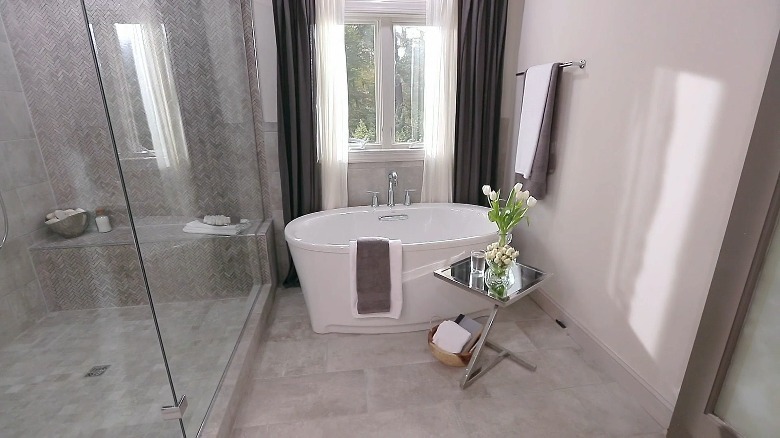 Hilary Farr won over Kathy in the end with a stunning makeover that featured a jaw-dropping master bath. The oversized shower, freestanding tub, and opulent finishes were just a few of the elements that made the homeowners speechless. Farr turned their original tub into a closet, which should only be considered if your bathroom is well-ventilated. While the reconfiguration of the bathroom took away some space, fans agreed that the renovated bathroom was much more functional. One of the top comments, from @wandamackenzie144, reads, "Homerun Farr!" @drewconway7135 agrees, "Based on that master bath alone I figured they were going to go Love It." To capture the look of this popular renovation, make sure to prioritize placing your tub by a window. This will create an indulgent look and make your bathroom appear larger.