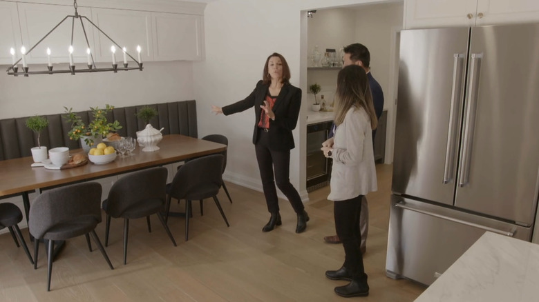 No matter how big your kitchen is, it always seems like it's lacking enough storage space. Whether you shop at Costco and buy bulk items that are a pain to store or just have a huge serveware collection that needs many cabinets to house, you can never have enough cupboards in your kitchen. However, your kitchen only has so much square footage, so if you need more storage space, you have to become clever as to where to add it. On "Love It Or List It," Hilary Farr showed viewers just how to do that by expanding the cabinets into the attached dining room.
