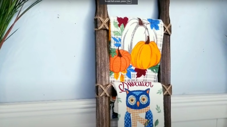 Large paint stirrers are ideal for fashioning into a wooden ladder, which can be purely decorative or fully functional. Just attach the paint sticks in a ladder formation using glue or staples. If you want longer lengths, attach two stirrers vertically or horizontally with wooden popsicle sticks as braces glued to the back to hold them firmly together. Use the ladder as a wall piece or to hang items like blankets, towels, or winter scarves from near the door. Add screw-in hooks for a cute cup rack or use the ladder outside as a DIY trellis.