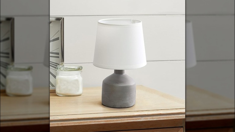 The Simple Designs LT2080-GRY Mini Bocksbeutal Concrete Table Lamp is a great Amazon find that would work for this project and at a low cost. If you would prefer a higher end lamp, the Signature Design by Ashley Dreward Casual 25 Inch Paper Table Lamp might be more your speed. Those on a tight budget might want to consider visiting their local thrift stores to try to find stone or concrete textured lamp bases for super affordable prices.