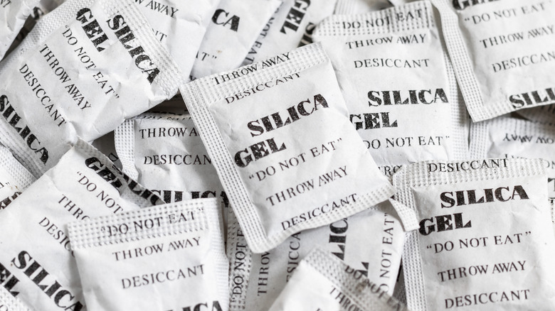 Silica packets contain silicon dioxide molecules that are capable of absorbing up to 40 percent of their weight in moisture. That's why you'll find the little pouches tucked into the packaging for shoes, handbags, electronics, and many other products. It's easy to save and repurpose a few silica packets from your purchases, or you can order a package of 5-gram silica gel packs from Amazon. To keep your super glue in good condition between projects, place it in a glass jar along with several silica gel packets. Replace the jar lid tightly and store it at room temperature.