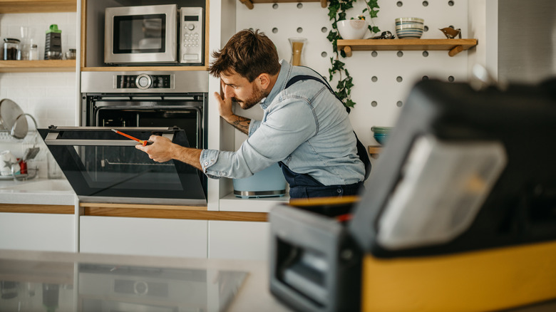 It's also important to unplug your oven in addition to shutting down the gas supply if you can smell gas, Cornell said. That's because, with a leak, there is potential for disaster. "An unattended gas leak can cause serious damage including fires, carbon monoxide poisoning, and even explosions," Cornell explained. That's why it is critical to take actionable steps when your oven is making bizarre noises.