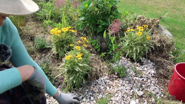 In your search for natural DIY weed barrier alternatives to landscaping fabric, you've likely come across seashell mulch. It reportedly has a ton of benefits for the garden, from the aforementioned weed control to providing your plants with much-needed calcium and reducing soil acidity. Not to mention its sustainability — oyster shells, for example, are an agricultural waste product. What's not to like? Well, some gardeners report shell mulch (with oysters, clams, and scallops most often used in the U.S.), gives off a decidedly unpleasant odor. The stink associated with this organic garden coverage alternative is caused by the decomposing tiny bits of the creatures that once called the shells their home — be that the shellfish themselves or hitchhikers like barnacles.
