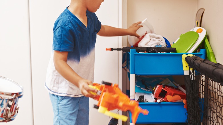 In the pantry, use the racks to separate breakfast foods, snacks, baking ingredients, and canned goods — no more rummaging through a messy pile. Adding to that, this rack is a lifesaver for half-used packages that won't stand up on their own. When it comes to cleaning supplies, place sponges, dish soap, and scrubbers on the top tier while leaving the bottom for sprays, paper towels, or dishwasher pods. Adding small adhesive labels to each rack ensures everyone knows where things belong, eliminating mix-ups between kids' snacks and your cooking staples.