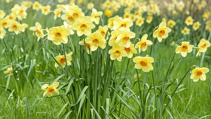 Unlike many other spring bulbs like tulips, which require cold winters to bloom well, daffodils don't require a set number of chill hours, making them an excellent spring bulb option in zones 3 through 10. While not native to North America, these non-invasive flowers naturalize well and can easily thrive for decades or more if they're planted in a good location that gets at least partial sun and has well-draining soil where the bulbs won't be prone to rotting. While daffodils aren't considered especially heavy feeders, they do benefit from a slow-release fertilizer that contains more phosphorus and potassium than nitrogen.