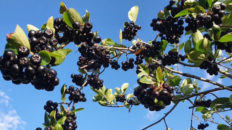 Native to eastern North America, black chokeberries thrive in zones 3 through 8. While many cultivars can reach 10 feet tall and 6 feet wide, the popular 'Iroquois Beauty' variety doesn't grow taller than 3 or 4 feet, making it ideal for smaller spaces. In addition to providing food for birds during fall and winter months, black chokeberries are also great for pollinators during spring and early summer months, thanks to their dainty pink or white flowers. Because many chokeberry varieties have stunning autumn colors, they also make fantastic alternatives to beautiful but invasive burning bush plants.
