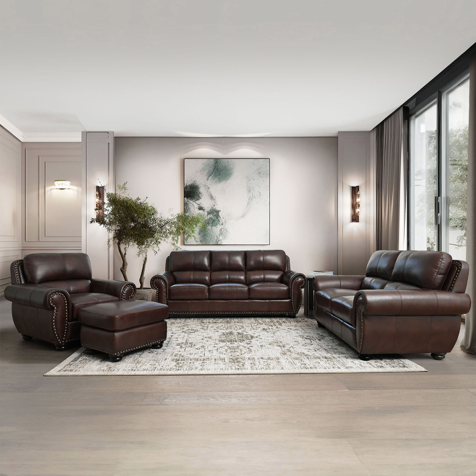 This couch set has another impeccably high ranking, with an average 4.5-star rating from over 100 reviewers. Roughly 78% of reviewers left a 5-star response, even though the color is "not true to picture." Some people claim it's more brown, while others say it's more reddish. Luckily, like with the other sets on this list, you can play it safe by ordering a free sample swatch to compare the leather tone to your current living room color palette. Aside from comments about the color, reviewers raved about the feel of it, saying, "The leather is beautiful and soft, with a texture that feels really nice to the touch."