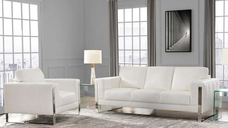If you're looking for a long-lasting, timeless design that could befit many interior styles, the Luca two-piece sofa and chair set from Costco ($3,799.99) could be a potential pick. These seats are 100% leather across the cushions and armrests, with split leather across the sides, back, and front rail. While there are two color options, only the brown selection is currently in stock. The back and seat cushions are removable, making them easy to wipe down and polish. The couch and matching chair sit close to the ground, standing on wooden feet only two inches above the floor. The inconspicuous feet make it easy to match the seats with other living room furniture, so whether your style leans towards rustic wood coffee tables or urban modern décor, the Luca set should be a seamless match.