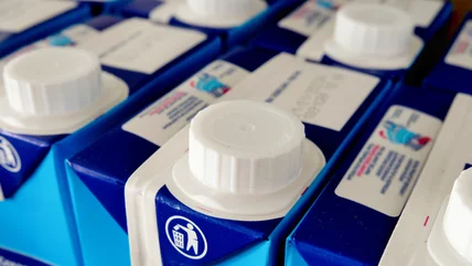 You might have realized how many uses there are for mason jars around your house, including turning them into sewing kits and kitchen clutter storage, but housing foods in these vessels keeps them fresh and gives a rustic, farmhouse chic aesthetic to your pantry. When you finish off a carton of milk, put it to one side and grab some scissors, along with a marker or pen. Wash out the carton so no old milk remains, then cut off the top portion that houses the spout. The key to easily getting the portion you need is to trim the edges until the top of the carton lies completely flat–don't trim too close to the pourer; you'll need that area intact to replace the metal circle.