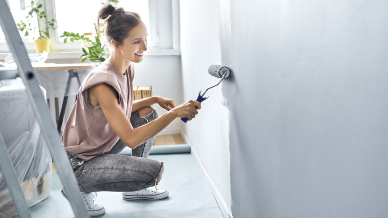 According to Scott, there's also one very important thing you should not skimp on — the prep work. "You have to sand the surface down and prime it properly," he states in the video. In older homes, the prep work is especially important, since you may be painting walls that have multiple layers of old paint. While it can be a time-consuming process and tempting to skip, there are thankfully various gadgets on the market that can help you prep your room for paint in record time.
