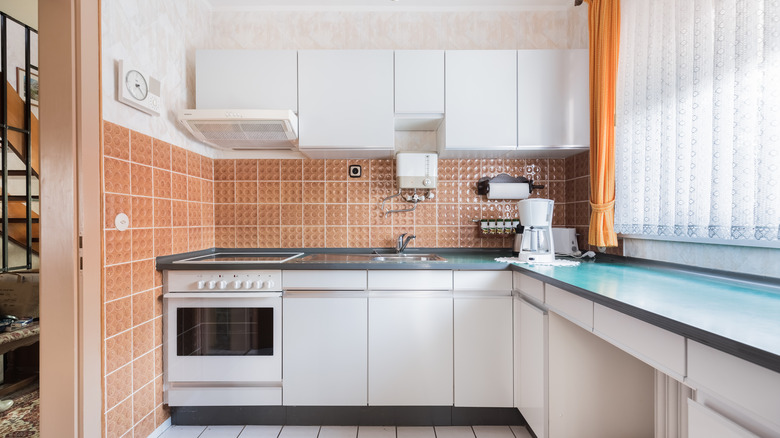 As with all trends, interior design fads come and go. However, while some vintage kitchen trends are making a comeback in 2024, others are definitely staying in the past where they belong. Kitchen trends of decades past range from functional and no-nonsense to whimsical and downright absurd. We're talking about busy-patterned Formica countertops, mosaic tile backsplashes, and enough clashing colors to make your head spin. Other hallmark features of an outdated kitchen prioritize ease of access, such as over-range appliances, closed-off layouts, and frying pans swinging from the ceiling. What all of these former trends have in common is that they likely will not be making a major comeback any time soon.