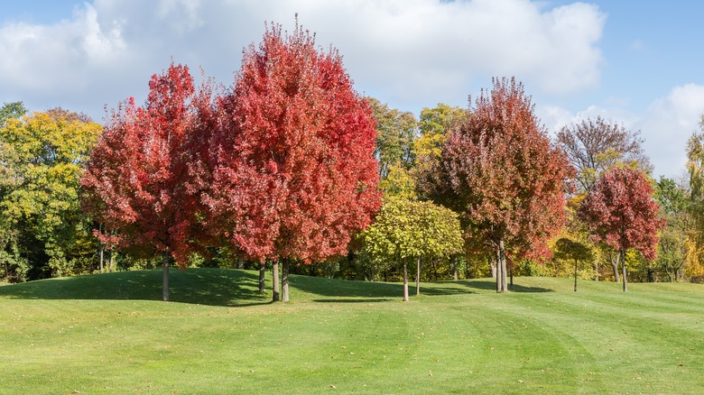 Native to most of the eastern part of the U.S., the red maple (Acer rubrum) is considered a very easygoing tree that's tolerant of most soil conditions. When its seeds find a happy place to live, researchers have seen red maple sprouts reach anywhere from 1 to 3 feet in their first year and grow another 2 feet annually for the next few years. Plus, its fall display of fire-red leaves makes it one of the best maple trees for a little bit of drama right in your own backyard.