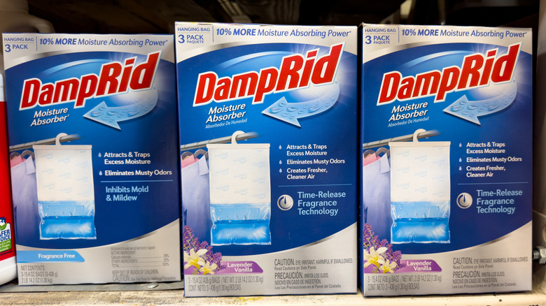 If you have come across damp clothes, musty smells, or visible mold in your closet, you might feel like you need to do something extreme in response. It's true, mold is highly aggressive once it takes hold and can penetrate deep within clothing fibers and cause irreparable harm. In addition to the damage it can inflict on your clothing, it can also cause health concerns for individuals who are especially sensitive to mold spores; once detected, moldy clothing is likely destined for the trash can, making it a huge expense and inconvenience to deal with. If you have discovered mold spores on your clothes or have experienced any of its side effects, you might assume it's a surefire sign you should be running a dehumidifier. While this can certainly help, racing out and buying an expensive unit isn't your only option. Dehumidifier bags can work just as well. They offer a simple solution to damp cupboards and can keep your closet smelling fresh and prevent your clothes from harboring mold — and they won't hurt your bank account, either.