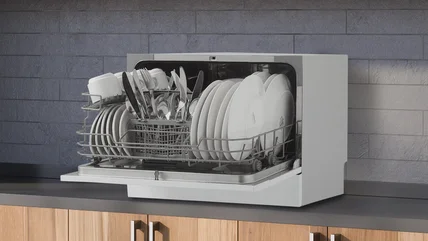 Appliances are here to make our lives easier, and one task we're particularly happy to automate is washing dishes. No more bacteria-filled sponges, gallons of water down the drain, or wrinkly fingers — how luxurious. Unfortunately, not every kitchen is equipped with a dishwasher. For small apartments and kitchens, it might not be possible to install one. However, lacking space is not a problem thanks to the viral space-saving countertop dishwasher. The appliance sits on your counter and easily cleans dishware and cutlery. But not every dishwasher is made equally. When choosing the best countertop dishwasher for your kitchen, consider the appliance's size, wash cycles, and connection method.