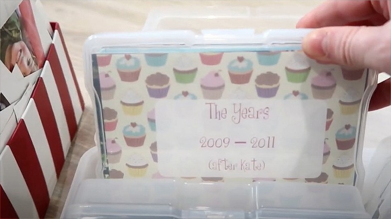 If you prefer your photos neatly organized and safely out of sight, start by choosing a structure that makes sense to you. You might group them by theme — like gathering all of Grandpa Bob's photos together—or arrange them chronologically by year or time period. Professional organizer Rachel Arbuckle encourages her clients to shed guilt — if you don't know who the people in the pictures are, feel free to toss them, per Pro Organizer Studio. She does suggest asking family members if they know and want the photos first. You can also consider scanning those old photos of departed relatives and backing them up in a cloud storage site, like Amazon Photos and Google Photos, which both offer unlimited storage, or whatever you currently use. Also, consider uploading them to a site like Ancestry.com and associating them to your family tree — it's a way for distant family to connect over shared memories and for future family genealogists to discover new glimpses into who those loved ones were. If going through your photos inspires you, consider some tips about how to declutter other sentimental items.