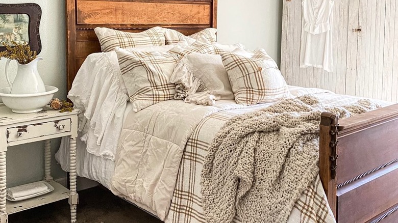 Plaid is an especially attractive pattern for more maximalist-style rooms, which often liberally mix patterns in different scales and varieties. Gingham and checkerboard plaids are often best used in cottage, vintage, or shabby-chic styles. It also suits preppy and dark academia aesthetics, where plaid is a very common element, along with rich textures like corduroy and tweed. Further, the crosshatch stripes is a stellar masculine design option if you're looking to add interest to your space. You can also blend plaids with other prints for the perfect pattern mixing that's trendy and modern.