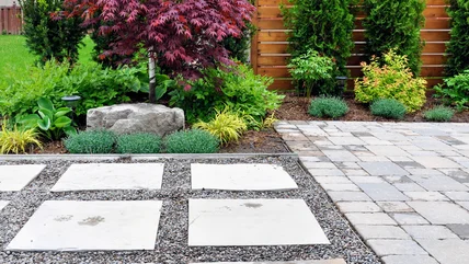 With this DIY project, your creativity is the limit as you can find paint in a range of colors including earth tones, vibrant blues or greens, and more. You also don't have to paint your pathway one color. You can combine hues, use stencils for patterns like polka dots and flowers, or make your own glow-in-the-dark landscape. If you want to make sure your pathway remains cohesive with the rest of your yard, you can also follow these tips to pick the perfect paver color to match your home.