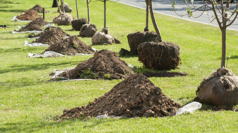 Equally important is the pH level of the soil. The ideal pH for fruit trees is between 6.0 and 6.5, which is slightly acidic. In an exclusive interview with House Digest, John Snow, a board certified master arborist and managing partner at Tree CheckUp, LLC., reveals more. "A good first step is to test the soil to determine what your tree needs — if anything. A key point here. Start with a soil test. It's inexpensive and can point you in the right direction." If planting several trees in different areas of the yard, confirm that the various locations have the same pH using a test kit like the Luster Leaf Soil Kit. After determining the pH, you will need to make adjustments to get it between 6.0 and 6.5. Sulfur can be added to lower the pH, while lime can help increase the pH of soil that is overly acidic. Keep in mind that both of these additions can take some time to work. You'll want to leave a minimum of six months to a year for the pH level to optimize. You can retest the area to check on the status of the changes.