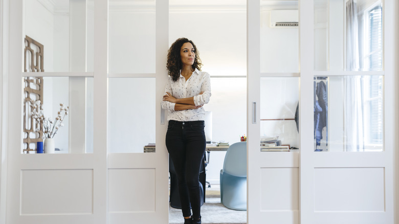 Despite their name, such sliding doors aren't entirely trackless — they just appear to be. They're actually suspended from above and slide on a pulley system, therefore, the track stays hidden. This is why they're also known as ghost sliding doors or hanging rail sliding doors. They won't damage the ground, which is ideal if you have flooring you want to preserve. Keep in mind that trackless sliding doors are only suitable for interior installations, as there's no bottom seal. One of the major benefits of trackless sliding doors is safety. Given the lack of ground tracks, there's no tripping hazard for at-risk family members or guests. So, if you have children, pets, or elderly people in the household, these doors are an ideal alternative. Plus, if you're searching for some of the easiest ways to make your home noise-free, a trackless sliding door can help you achieve this. Before making a final decision, you'll need to determine whether trackless sliding doors are right for your lifestyle and space.