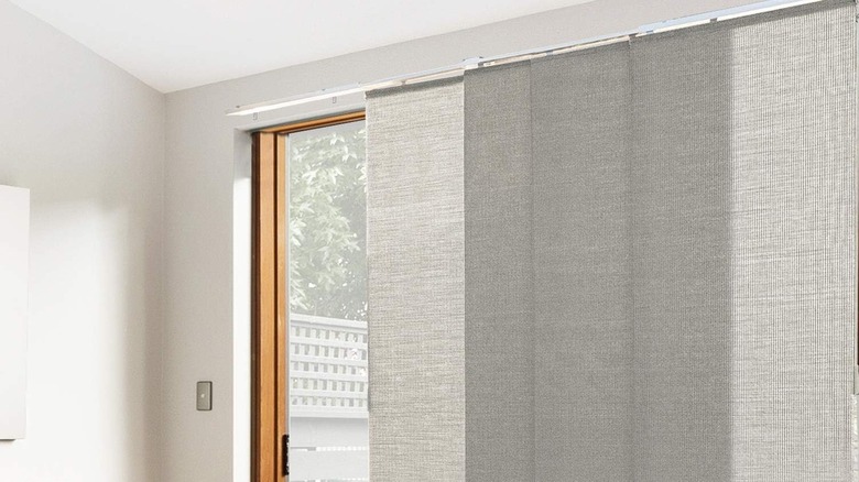 Use specialized panel blinds that attach to a sliding track in front of a sliding door