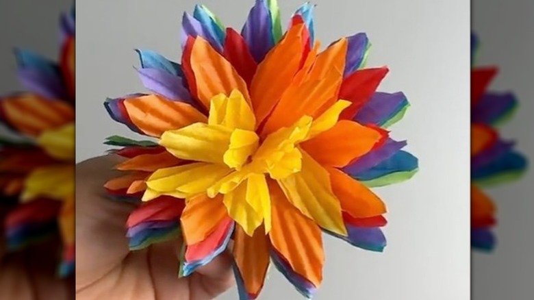 The delicate paper of cupcake liners bends easily, letting you quickly shape them into flowers. For the best contrasting effect, collect a variety of colors or patterns, then staple them together at the center. Once stapled, you only need to trim them, cutting square edges around the liners until they resemble a sun with its rays. From there, trim the edges at a slant to make petals, open it up, and enjoy. String them up as a mobile, frame them as a piece of art, or use them as a colorful vase filler.