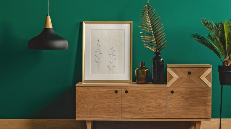 But what if you're done with minimalism and can't wait to unleash the maximalist in you? Look into jewel tones to project wealth in your home. "For those who love color, jewel tones scream opulence, so choose one or two you love to use in the space for some serious wow-factor," suggests Dale. While amethyst purple remains an iconic choice, ruby reds, sapphire blues, and emerald greens are catching the imagination, too. Further spruce the space with cashmere or velvet. If making a choice becomes overwhelming, consider color drenching. "When in doubt, color-drench the space with your moody or jewel-toned hue or choice to really make a luxury statement," says Dale. Put simply, saturate everything — from your walls and trims to furnishings — in the same hue. But don't forget to contrast with different finishes, lest it grows monotonous and unexciting.