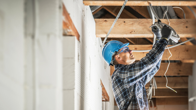 If your home seems like a good candidate for a vaulted ceiling, the process starts with removing the existing ceiling to expose and reinforce the roofing framework. After discussing with your contractor, you may need to install a few additional supports to help maintain the structural stability of your home. This could include a few temporary supports to help balance the load while you remodel your ceiling, such as a temporary wall , or more permanent supports like a pillar or beam. At this time, you will also want to tackle any electrical work that needs to be run behind the ceiling, whether you're installing a fresh set of lights in the vaulted ceiling or just moving existing wiring. Make note of where each electrical feature will need to be before installing any ceiling panels.