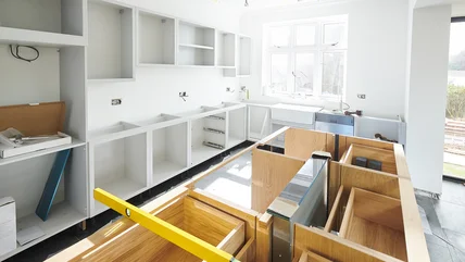 The backs of these cabinets are often very thin plywood or hardboard. So, you may also find similar-sized stretchers hidden behind them, again to give adequate structural support. It's something that's particularly important if, in addition to the items that will go in the cabinet, you're going to increase the load by utilizing the bare side of your kitchen cabinets to maximize storage.