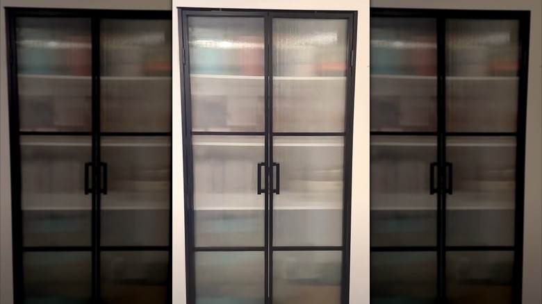 This pantry door has a black aluminum frame mixed with almost opaque reeded glass windows, and it's exactly what modern and industrial-style homes need in the kitchen. It has a minimalist, sleek look and a slim profile that helps keep your pantry private yet fully functional at the same time. The double doors instantly make the space look and feel grander and more open than a single pantry door.