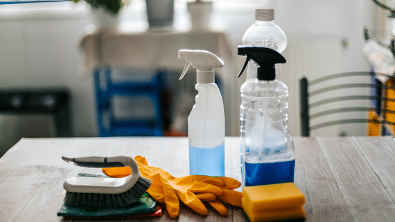 Restocking in preparation for spring cleaning doesn't always require a trip to the store. If you clean with DIY products, you may simply need to prepare a fresh batch of cleaning solutions. DIY vinegar cleaning solutions are common for creating effective, non-toxic cleaners for multiple surfaces. Vinegar's acidity helps clean surfaces without using harsh chemicals. Grab a large jug of distilled vinegar if you're running low to ensure you can refresh your solution as you go. It's also a good idea to check on your spray bottles to make sure you have enough containers for your DIY cleaners. Test the sprayers on your old bottles to make sure they still work well.